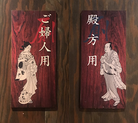 浮世絵ですね.殿と姫というよりは町人のキャラクターでしょう.和のテイストをうまく表現しているトイレサインですが,日本語のわからない外国人にとって,区別できるかどうか,若干,疑問ではあります.